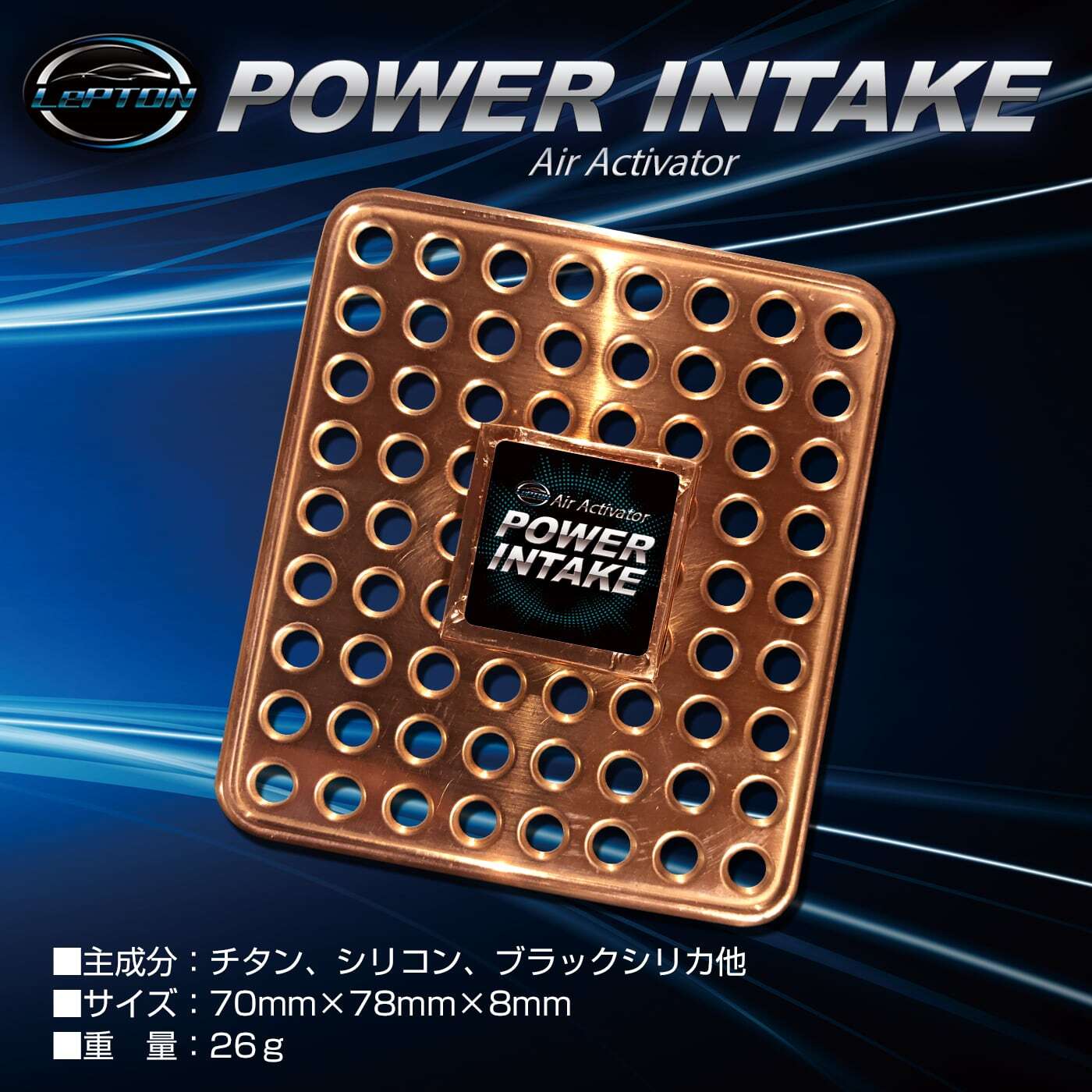 本レプトンが各メーカーに提供している従来のエアーエレメント用イオン活性パーツ(エアークリーナー)を大きく進化させ、驚くほどパワーアップしたエアーアクティベーター『レプトンパワーインテーク』が登場しました!