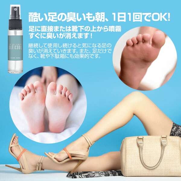 酷い足の臭いも毎朝、1日1回でOK!足に直接または靴下の上から噴霧してください。