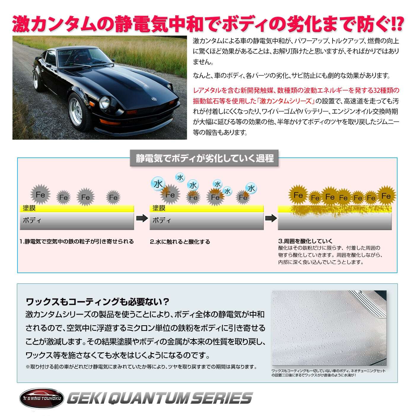車のボディ全体の静電気を中和して摩擦抵抗が激減! 驚くほどに燃費が向上!必ずと言っていいほど、激カンタムに嵌ったマニアは、まずこの4点を設置します。