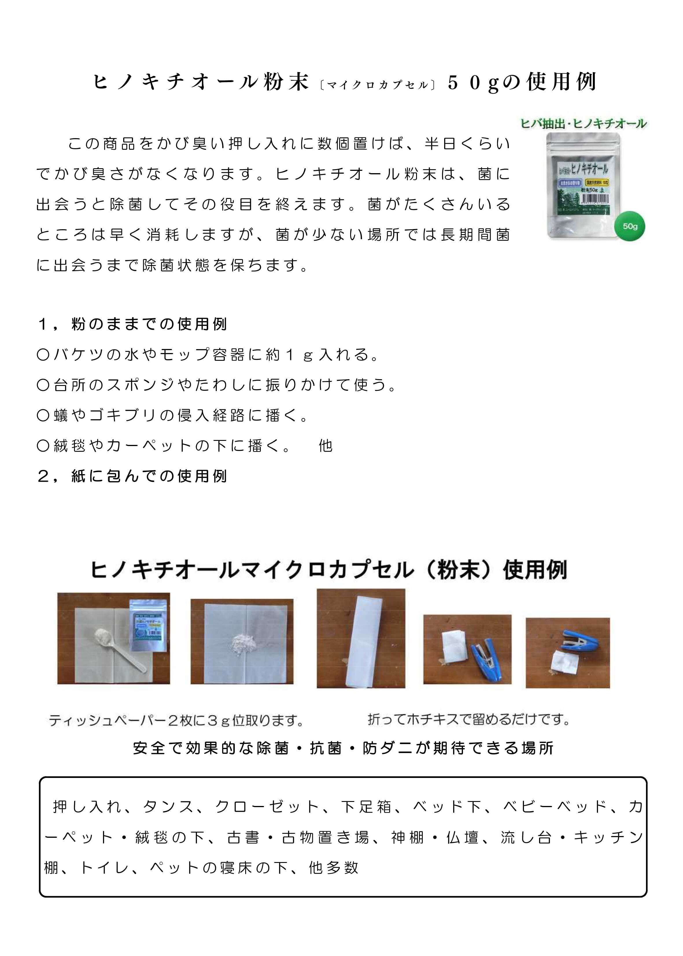 ヒバ抽出 ヒノキチオール粉末50g ひのき 檜 桧 抗菌 防虫 防ダニ 消臭 防臭 蟻 対策 タンス 防虫 引き出し 防カビ