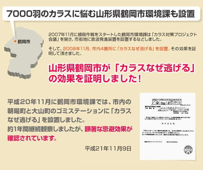 ※カラスの生育環境により性質には大きな違いがあります。その結果「カラスなぜ逃げる?」の効果にも地域差が生じます。説明書をよく読んで設置して下さい。
