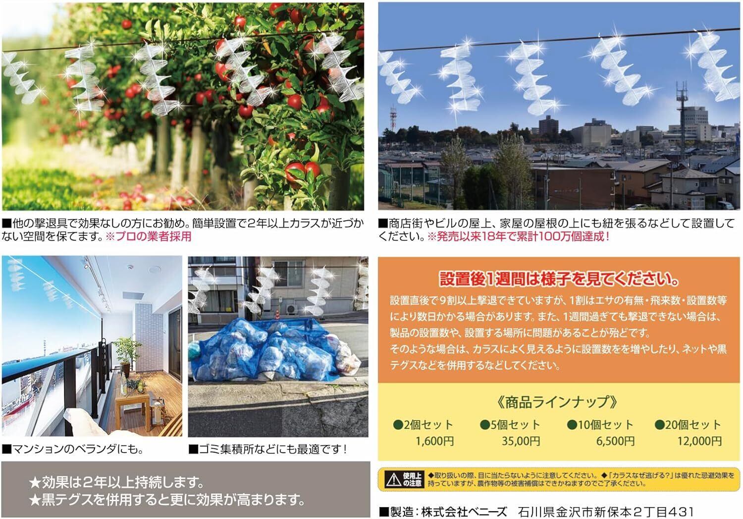 カラスの目の弱点を突いた特許製品であり、田畑、果樹園、ゴミ置場、マンションの屋上、アパートのベランダ等のカラス対策に最適です。
